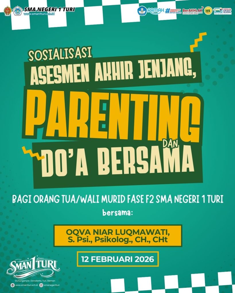 SLEMAN – Dalam upaya memanifestasikan visi sekolah yang unggul dan berkarakter, SMA Negeri 1 Turi kembali menyelenggarakan agenda strategis bagi wali murid Fase F2 pada Kamis, 12 Februari 2026. Bertajuk “Sosialisasi Asesmen Akhir Jenjang, Parenting, dan Doa Bersama”, kegiatan ini menjadi langkah preventif sekaligus kuratif sekolah dalam mempersiapkan kematangan mental murid menghadapi tantangan akhir masa sekolah di era digital.